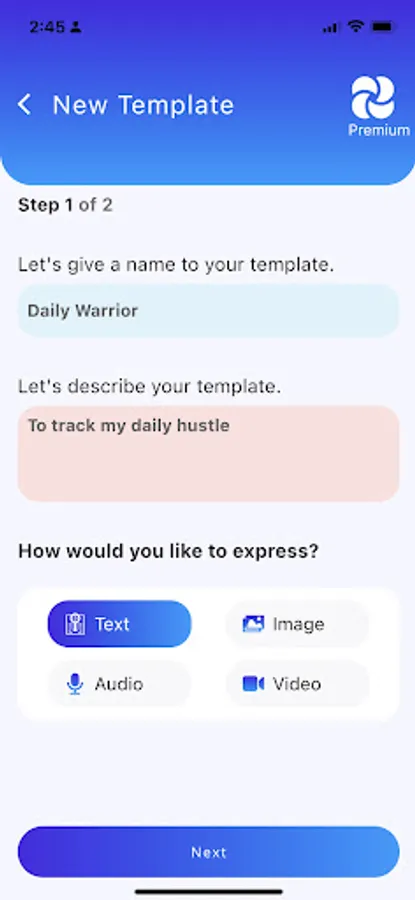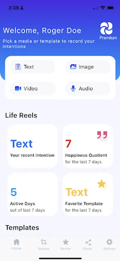 Record what you are grateful for by selecting already available templates or creating your own custom template