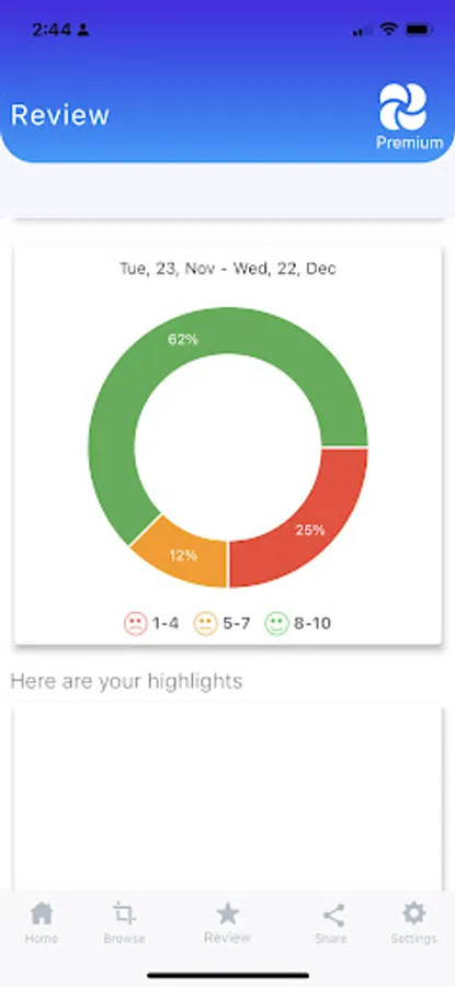 Get weekly and monthly highlights to identify areas of self improvement and develop attitude for gratitude