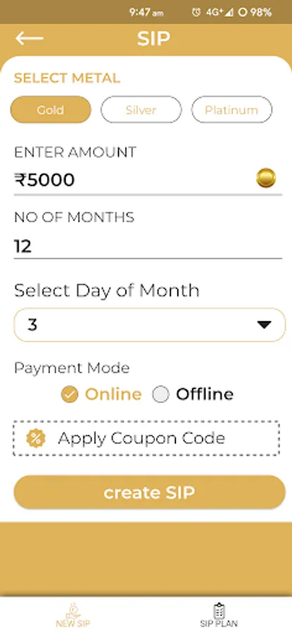 Customers can create an Monthly Saving Plan (SIP) in the App."