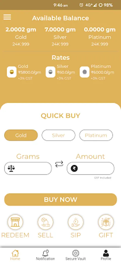 Customers need to visit the store to exchange the Digital Gold and Silver into jewelry/coins.
