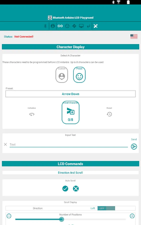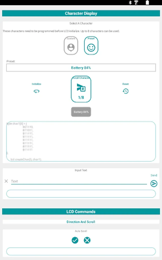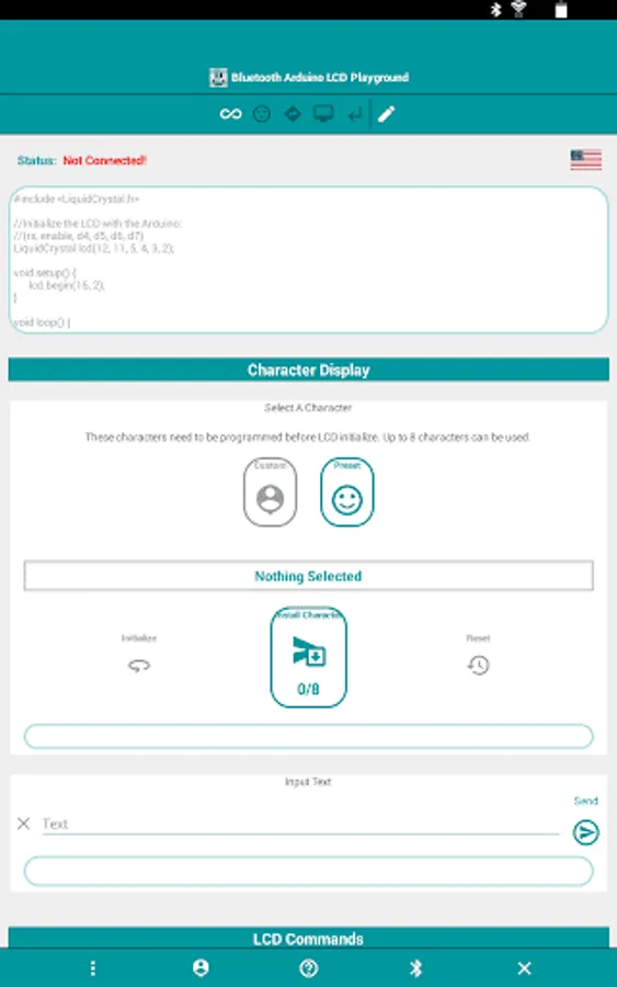 This app creates an interactive learning and prototyping environment to control an Arduino LCD using Bluetooth communication.