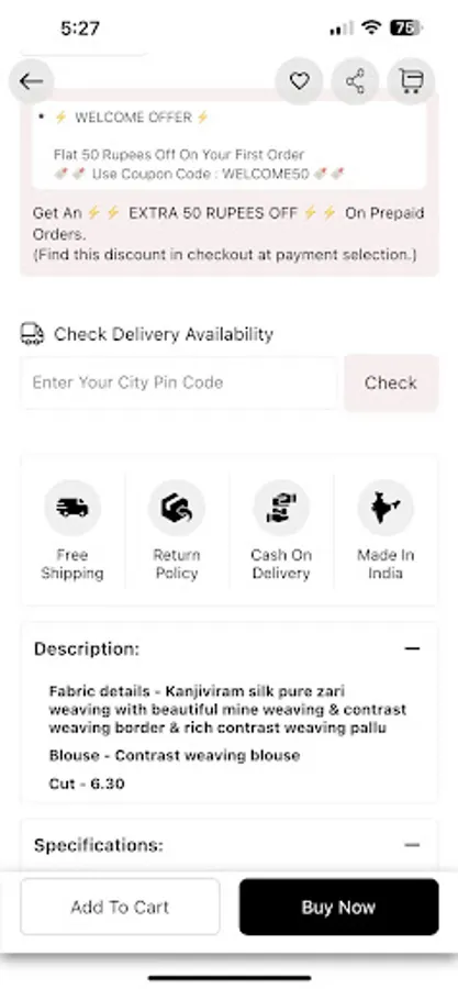 Drapemall app comes with a very user-friendly interface that helps users browse through the overall app very easily in simple steps. A user can also filter the sarees according to his choice, preference, size, and budget.