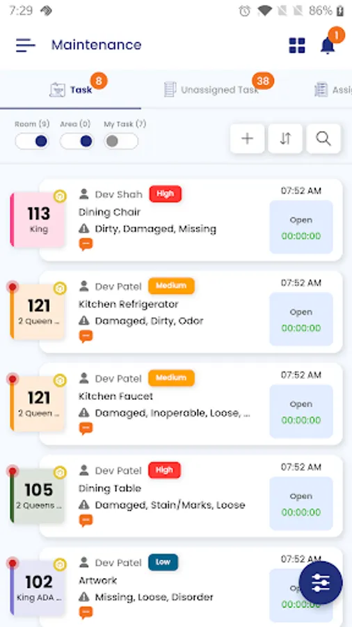 "NexTap" app for allowing a housekeeper to view a list of rooms that they are assigned to clean for that day. Housekeepers can manage their tasks and assign them to other housekeepers.