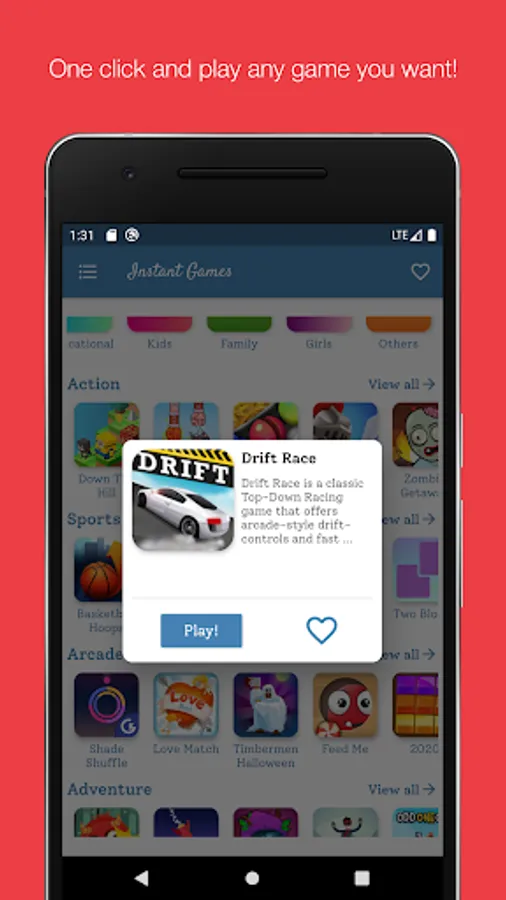Instant Games is the one stop for all your gaming instincts! Ride along with 1000+ games on your phone, anytime, anywhere!