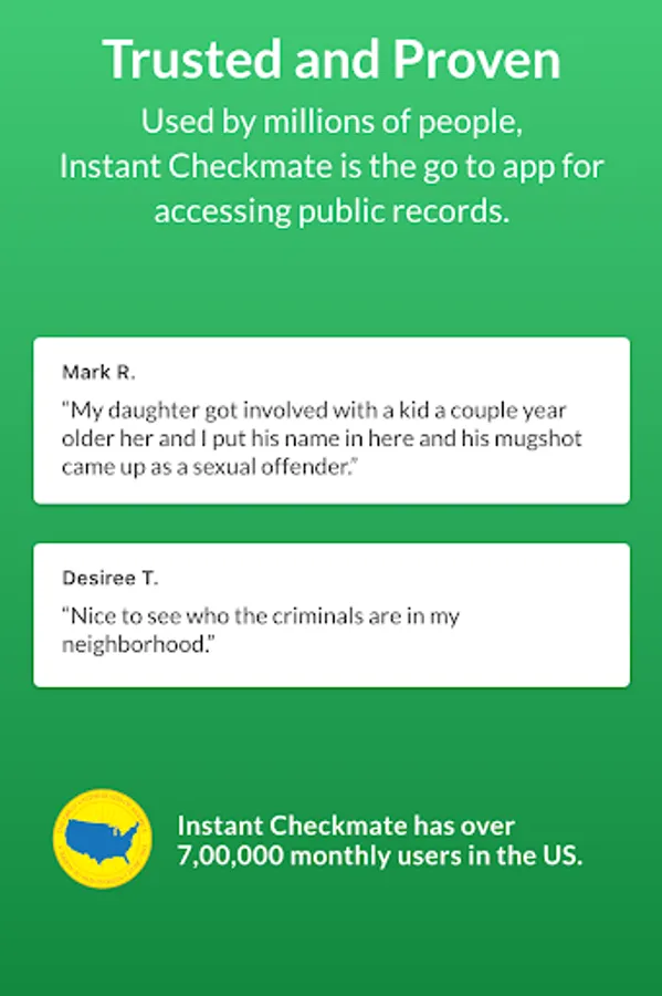 Quickly vet people on-the-go with Instant Checkmate’s background check app. Is an online seller legit? Should you get face-to-face with an online match? Find out more about almost anyone — from the people, you know to those you don’t. Lookup yourself to find out what’s “out” there about you!