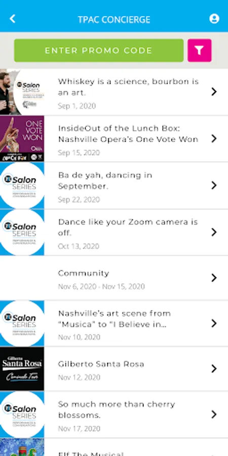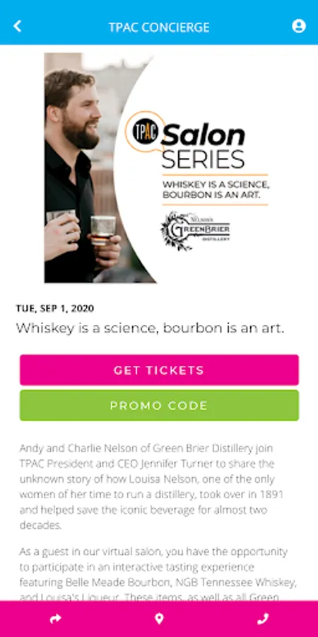 The TPAC Concierge app is the easiest way to follow events at the Tennessee Performing Arts Center. You'll have access to TPAC's events anytime, anywhere with this free app.