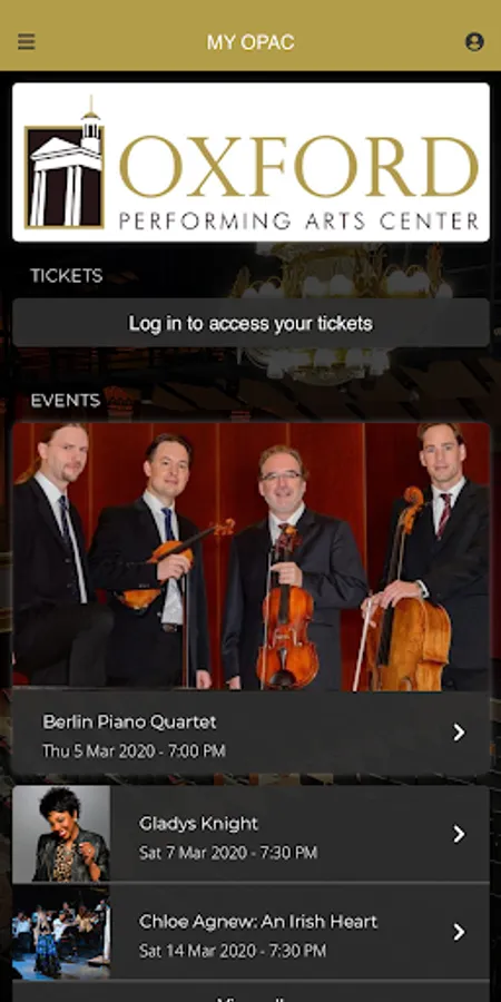 The free My OPAC app is the easiest way to purchase and use tickets for all performances at the Oxford Performing Arts Center. With the app, there is no need to print your tickets at home or wait in the will call line - just show your phone at the door!