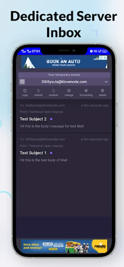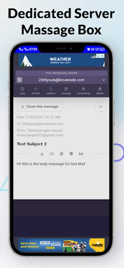 Our app is the ultimate solution for anyone looking for a simple and secure way to generate temporary emails. With just one click, you can instantly create a disposable email address that can be used for any purpose, whether it's signing up for a service, filling out a form, or just keeping your personal email separate from your online activities.