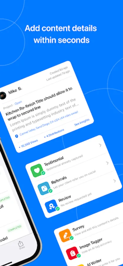 The InstantUploader mobile app makes it easy for you and your entire team to upload content including multimedia galleries and AI-generated customer stories from your InstantUploader account to your website and social media.