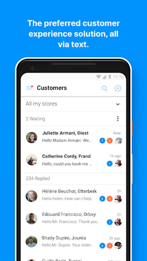 Receive all your customer messages directly in Instaply, regardless of their origin: SMS, Messenger, web widget, in-app sdk, Google My Business, Instagram.
