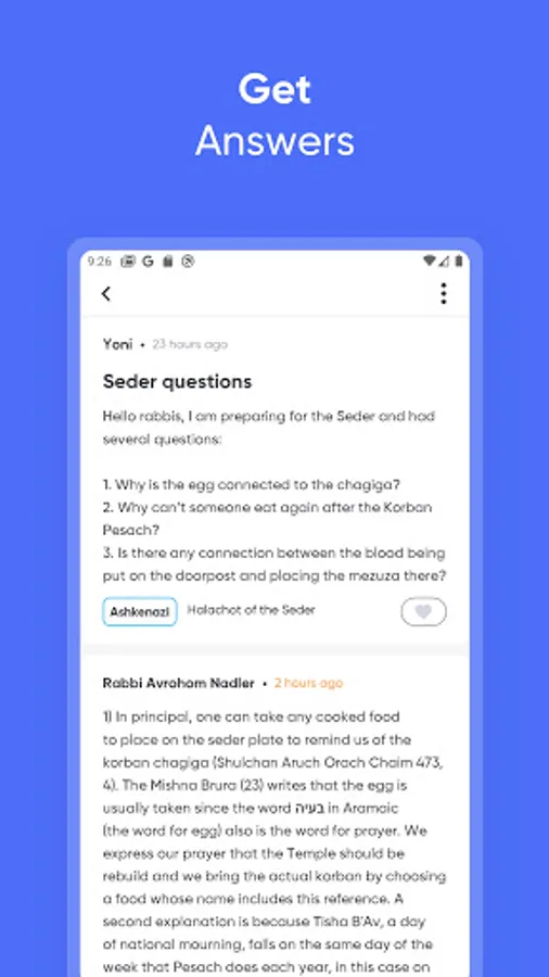 Submit a question on the app and await the quick response from our qualified and dedicated staff of Rabbis who are committed to enhancing halachic observance throughout the world.