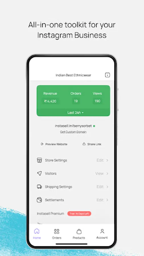 Instasell is an e-commerce website builder that helps you launch your online store and sell products online in under 2 minutes, for free. Choose the products you want to display on your e-commerce website from your Instagram business account or from your phone gallery, add price & stock and your store is ready! Instasell makes it easy to share your products and online store link on WhatsApp, Instagram and other platforms & also helps manage your orders, payments, customers and a lot more.