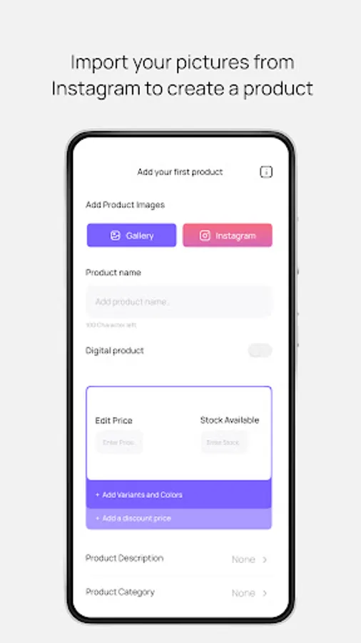 - Add products in no time by connecting your Instagram business page and import posts from your feed as products.