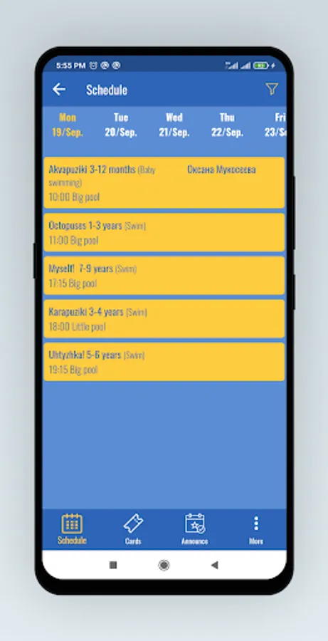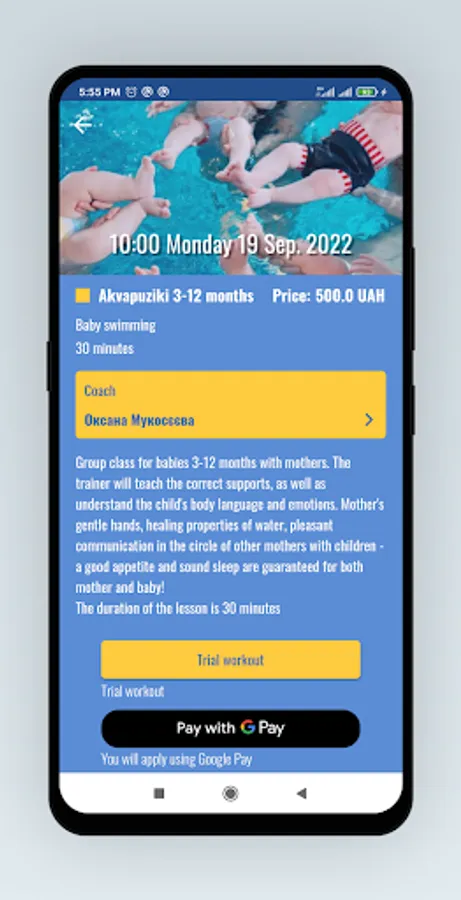 Registration in the club, viewing the schedule and season tickets, signing up for training.