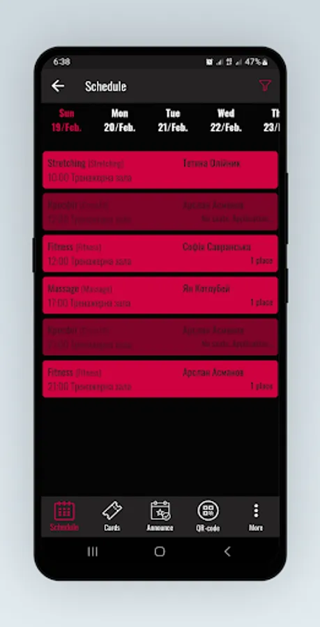 Registration in the club, viewing the schedule and season tickets, signing up for training.