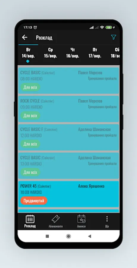 Online recording and cancellation of workouts from any device at any time. Online payment for trainings and subscriptions.