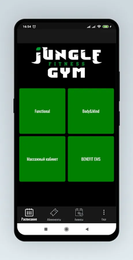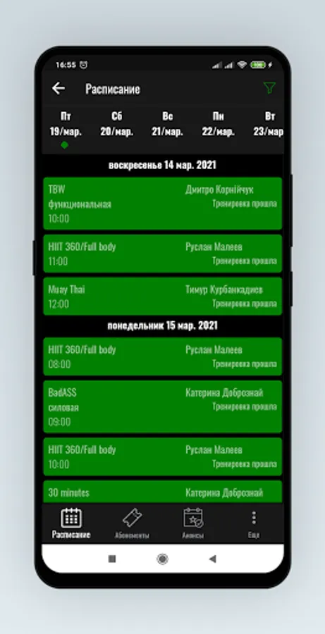 Registration in the club, viewing the schedule and subscriptions, registering for training.
