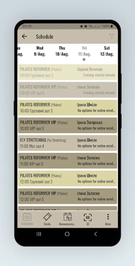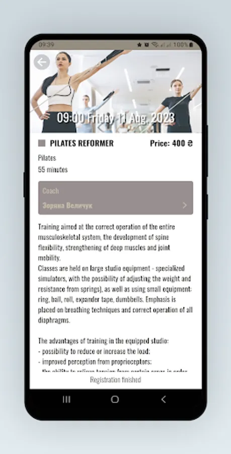 Registration in the club, viewing the schedule and season tickets, signing up for training