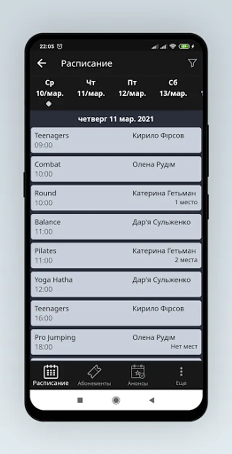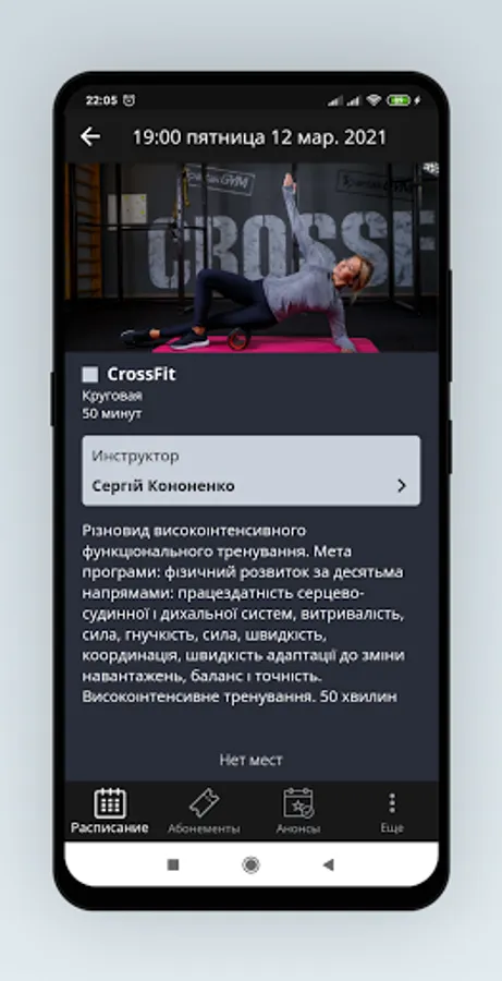 Online recording and cancellation of workouts from any device at any time. Online payment for trainings and subscriptions.