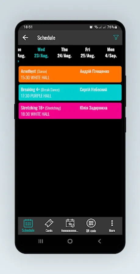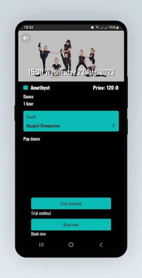 Registration in the club, viewing the schedule and season tickets, signing up for training