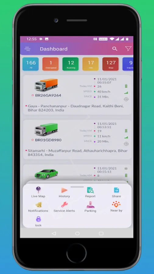 InstaTrack provide real time Vehicle Tracking to track your vehicle. With this you can always monitor your vehicle current state like vehicle position, vehicle state(Start/Stop/Move), Speed, A/C status.