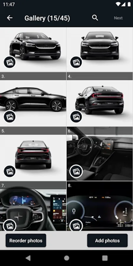 This product enhances vehicle listings with Exterior and Interior 360° Spins, Photos, and Feature highlights, creating a virtual tour of the vehicle for the car buyer on the Polestar Pre-owned Vehicle Locator.