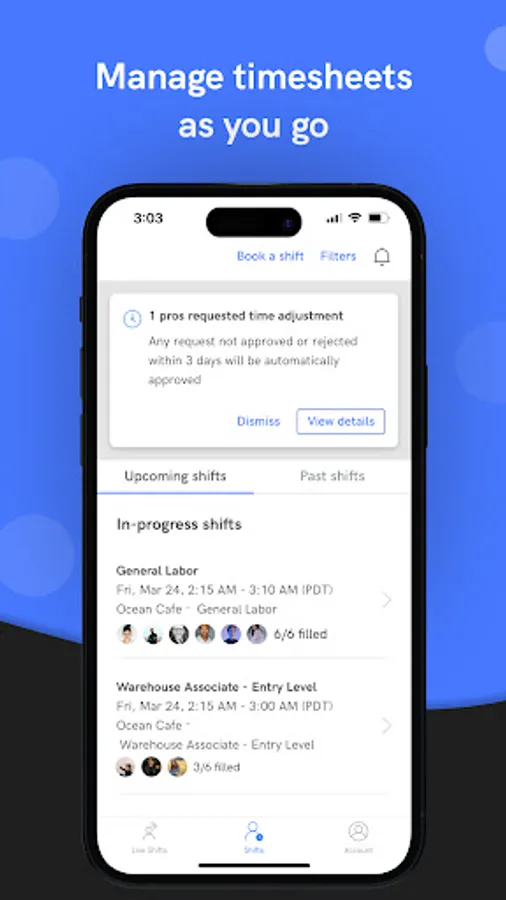 Instawork uses technology to match businesses with our vetted pool of 4M flex, seasonal and temp-to-hire workers at the touch of a button. We built this app specifically for Instawork Partners to post and manage their shifts on the go. Whether you are onsite or on the move, you have all your shift information right at your fingertips, making managing your shifts easier than ever.