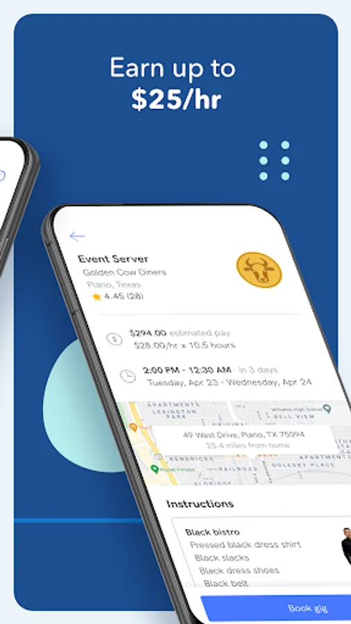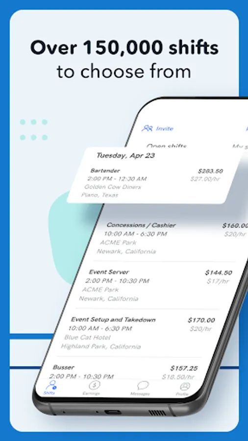 Find jobs on the ultimate tool to land your next side hustle. Unlike traditional job search apps, Instawork makes it easy for you to find available jobs, shifts, gig work, and more. Get hired at a job that works for you and even review pay details before accepting shifts. Easily see exactly how much you will make before each shift. Join our Top Pro Program and earn rewards and benefits like daily pay or cash bonuses. Become your own boss today with Instawork!