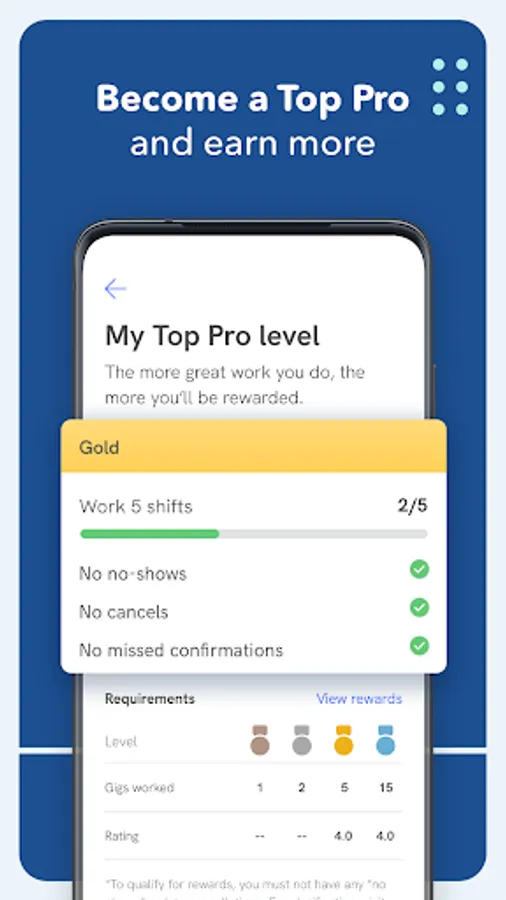 - Priority shifts access, cash bonuses, and instant payments await with our Top Pro Program
