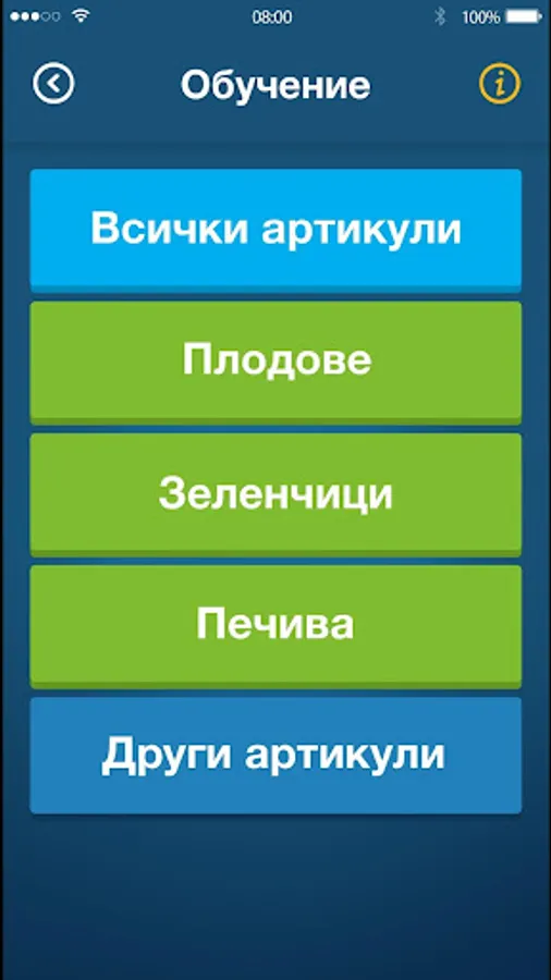 1. "Naimenuvanie" - in this way the screen shows a picture of the item with 6 different name. The aim is to recognize items and to choose proper naimenuvanie. The aim is article to be visually recognized and choose the correct naimenuvanie the proposed