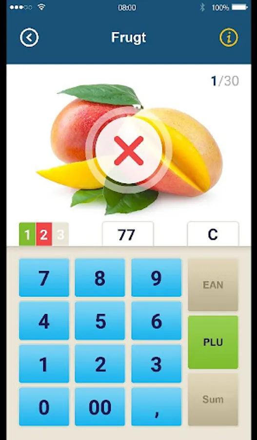 "Play" - here shown 30 different items in succession. Your goal is - urgently - to enter the correct PLU number to each product.
