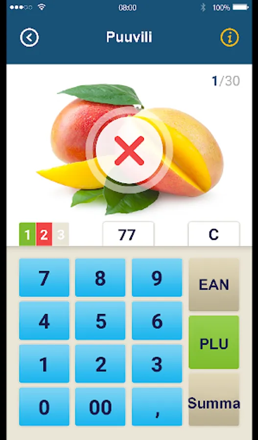 2. "PLU number" - this method displays an image of the article and six PLU numbers. The goal is to recognize the displayed article and choose the correct PLU number.