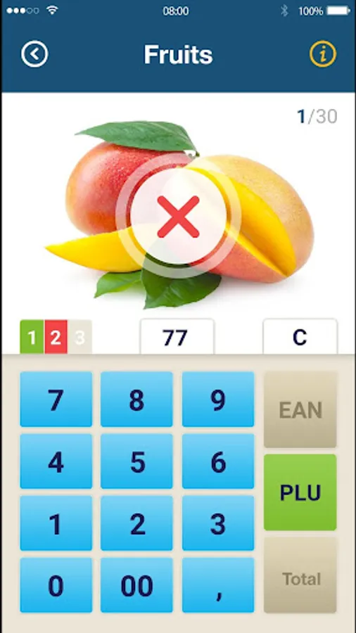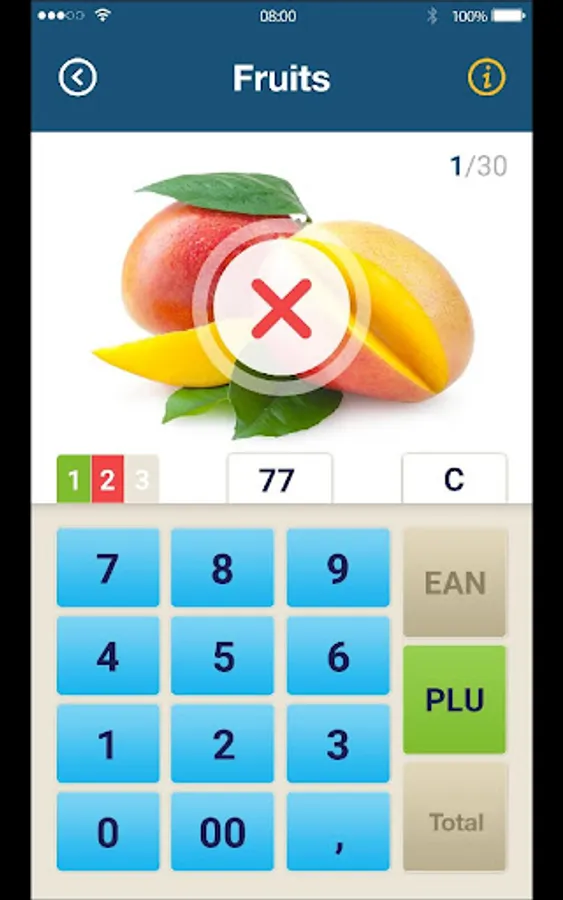 The goal of the mode "If test" is to check your knowledge of the PLU. It is in this mode to enter as soon as possible PLU 30 different items.