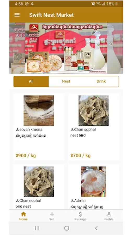 Swift Market Cambodia application is the application that user can find product relate to swift bird in Cambodia as nest or saliva. User can contact directly to owner if they want to buy.