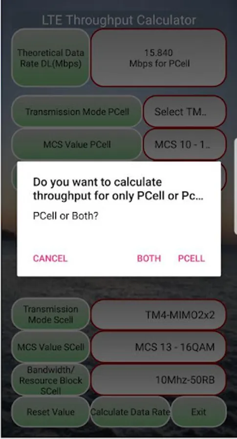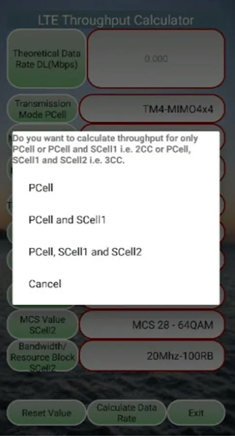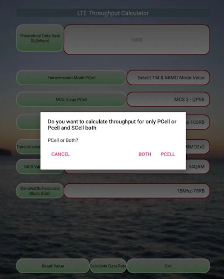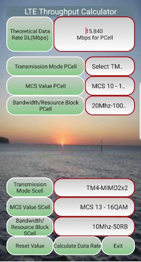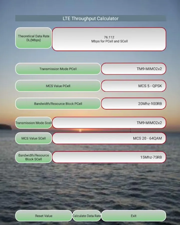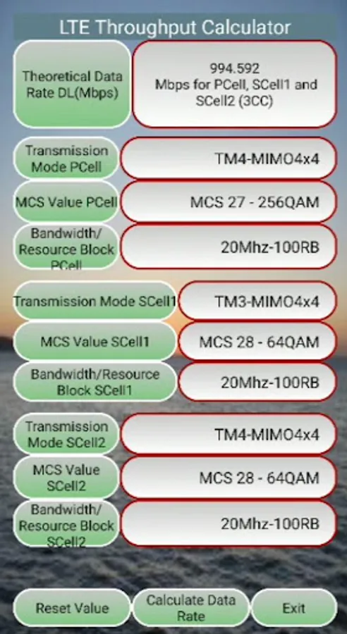 This app is designed to calculate LTE Data Throughput in downlink for single carrier as well as carrier aggregation (2CC, 3CC) based on 3GPP with options as