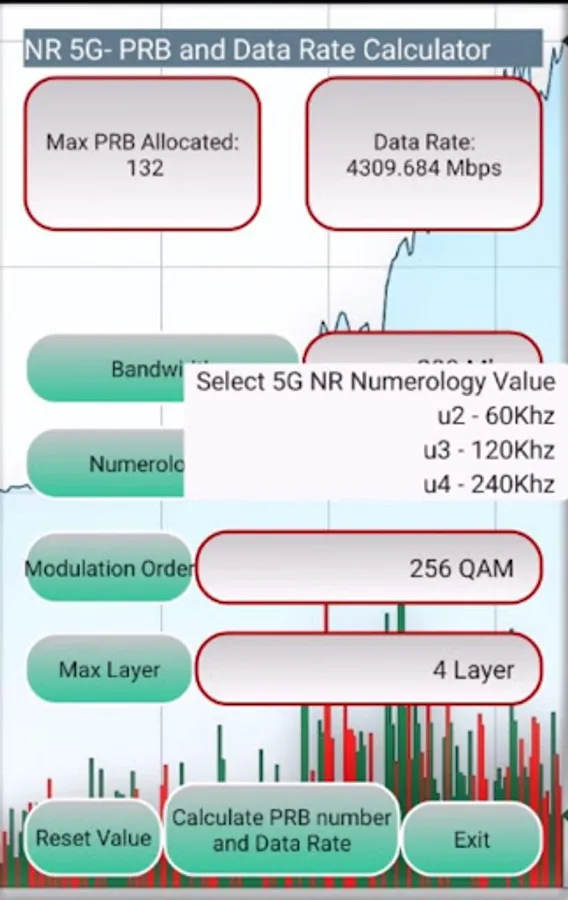 "NR 5G - PRB and Data Rate Calculator" app is developed to help the users on calculating the Max allocated Physical Resource Block number and the corresponding theoretical data rate based on the selected NR Bandwidth and Numerology. The app is based on the defined 3GPP specification parameters on NR.