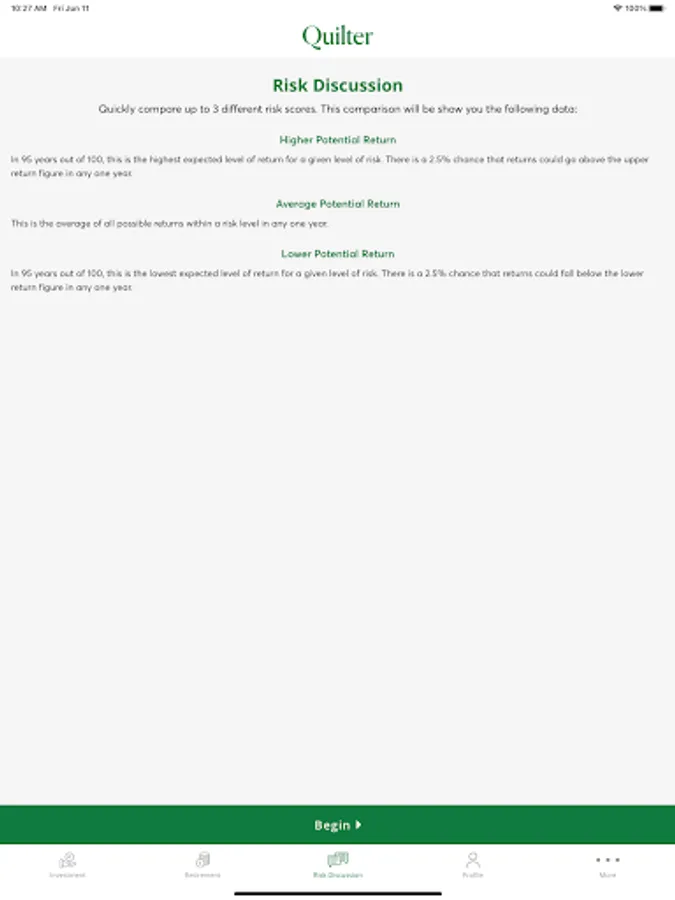 To make the whole process more efficient for you and your clients, this app does it all in one go. It allows you to complete the questionnaire, get the risk score and then discuss with your client what that risk score means, during a single meeting.