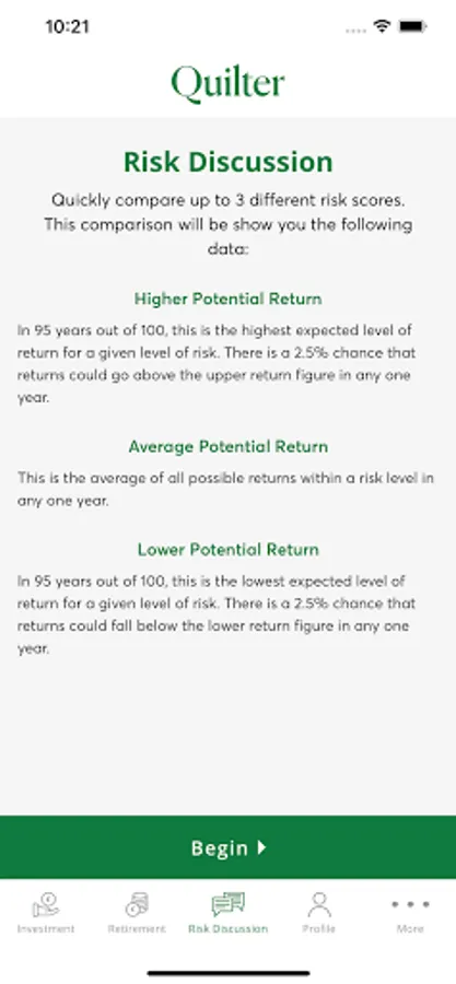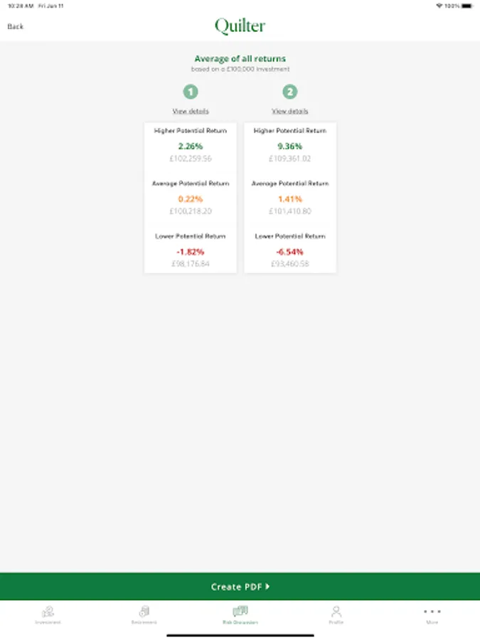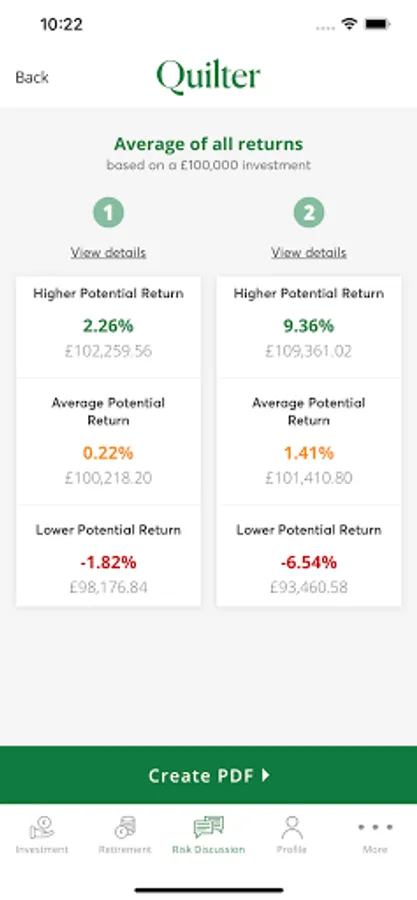 The agreed risk level can then be emailed back to your office for use with Quilter’s platform online investment tools.