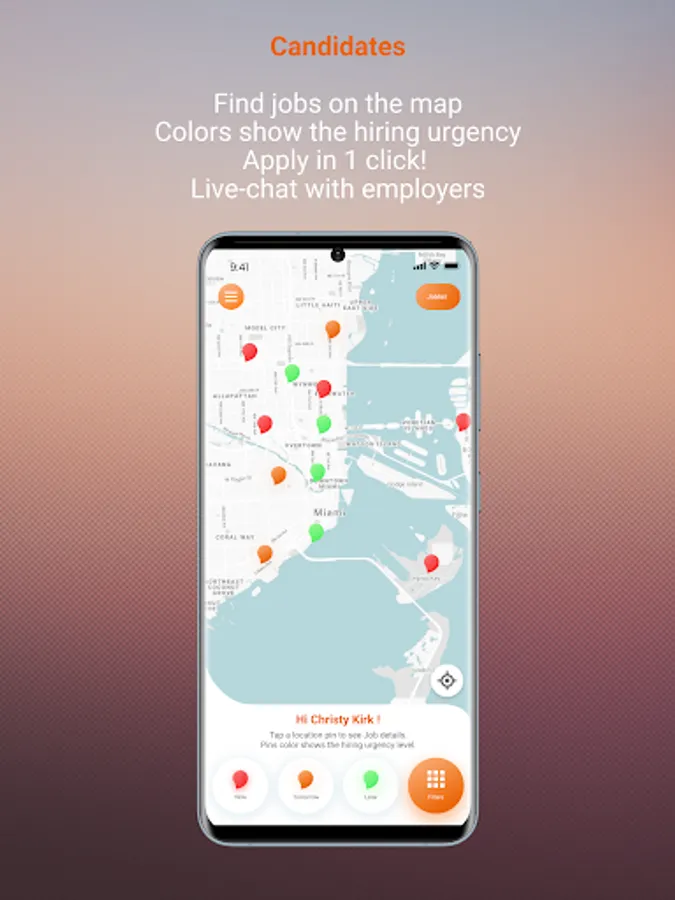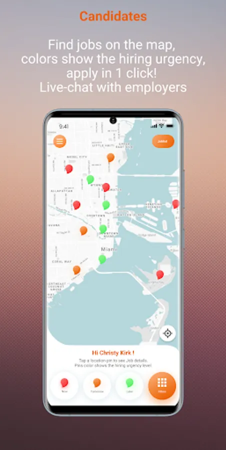 - Immediate access to available candidates (map visualization)