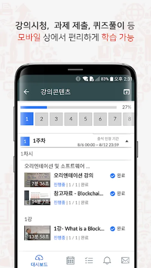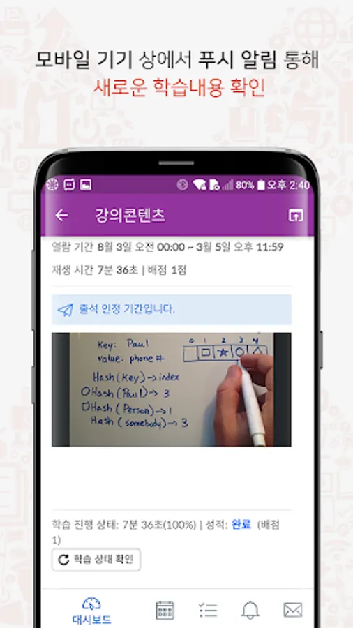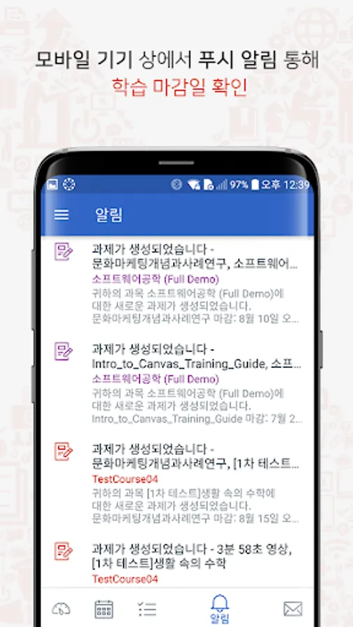 -Mobile push notification-Quickly check the necessary information, such as newly registered learning content, deadline assignments, etc.