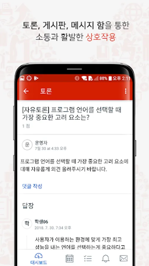 On the mobile device, you can conveniently use the rich features such as learning progress / interaction / communication through messages and comments.