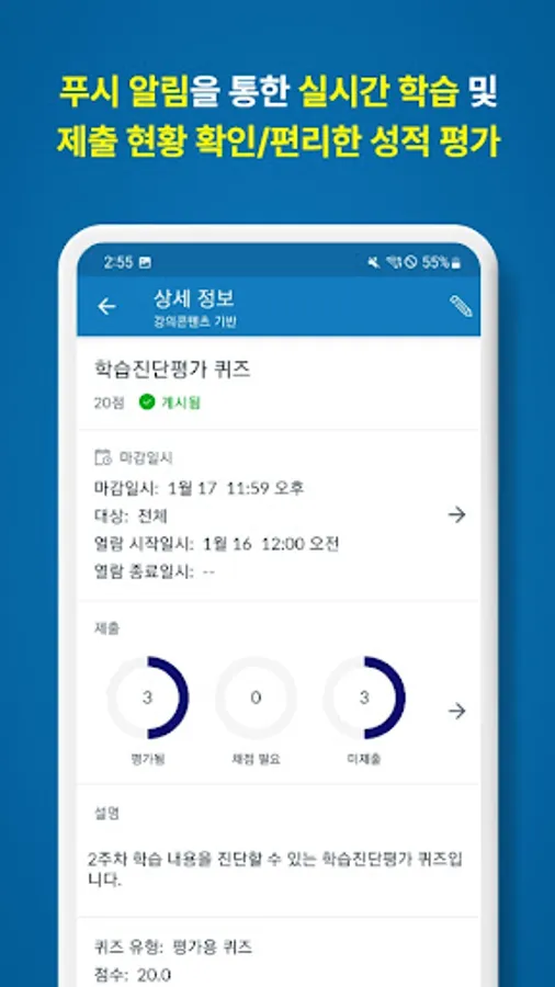 ■ Real-time study and submission status check and convenient grade evaluation through push notifications