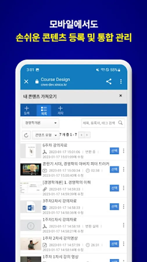 ■ Easily register and manage content in the same mobile environment as web/PC
