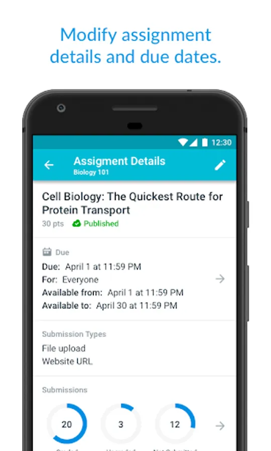 • UPDATING: Need to change a due date? Or publish an assignment? Or fix a misspelling? Canvas Teacher allows you to update your course content.