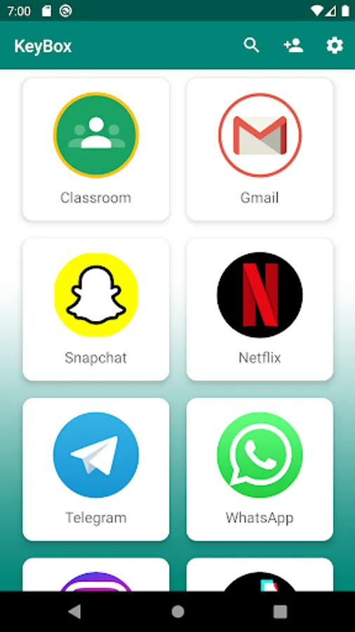 KeyBox helps you to securely store important information such as username and password or email address and contact numbers so you don't need to remember them.