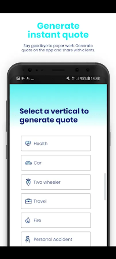3. Expand your portfolio: Generate instant quotes from multiple insurance companies - Car, Bike, Health, and Term insurance.