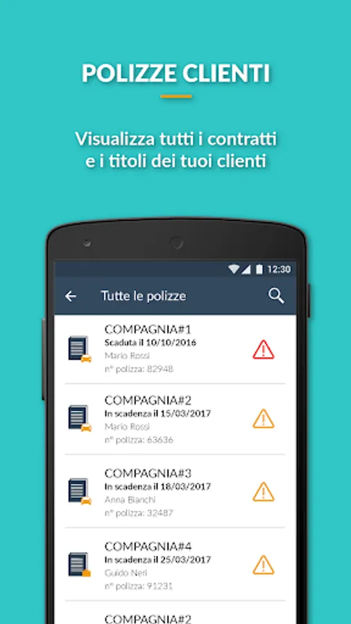 With this app you can improve the operation of your business. The retrieval of documents and deadlines of the policies will always be on hand for all your employees. You can communicate directly with your customers through the app: exploits the potential of digital tools to retain your customers.