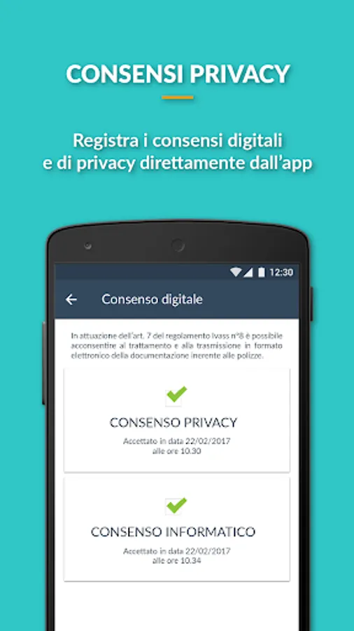 Download the app full of amenities. With this tool all the policies deadlines will be managed and notified automatically. Receive communications and promotions directly on your phone and send and receive documents and information related consents to privacy.