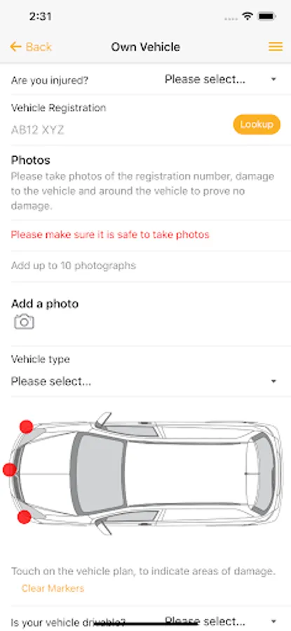 If an accident occurs, use the app to collect as much information as possible including GPS location data and images from the scene. This will be provided directly to your insurance broker to handle your claim.
