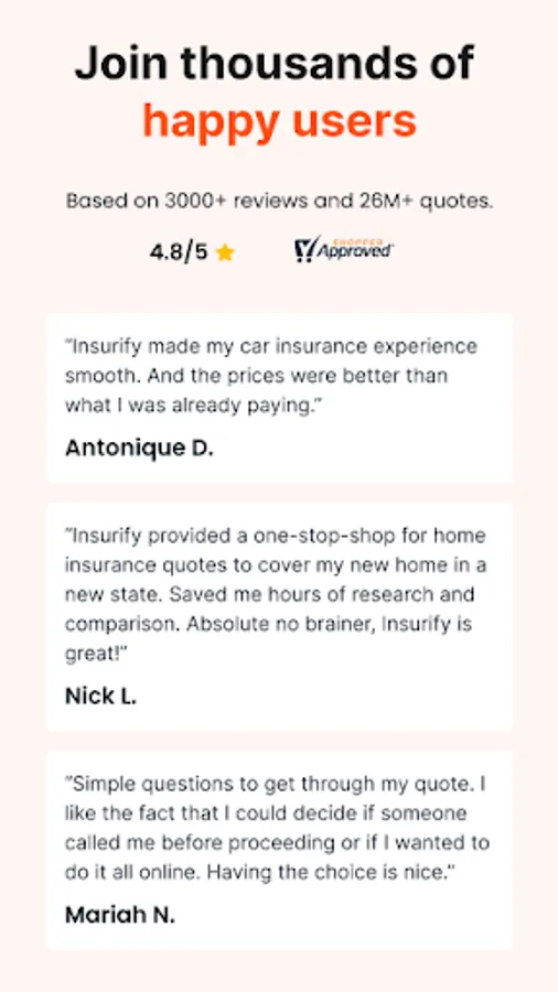 We’ve delivered millions of quotes to happy customers, saving them an average of $996 on their annual car insurance premiums. Ready to save? Download the Insurify app to get started.